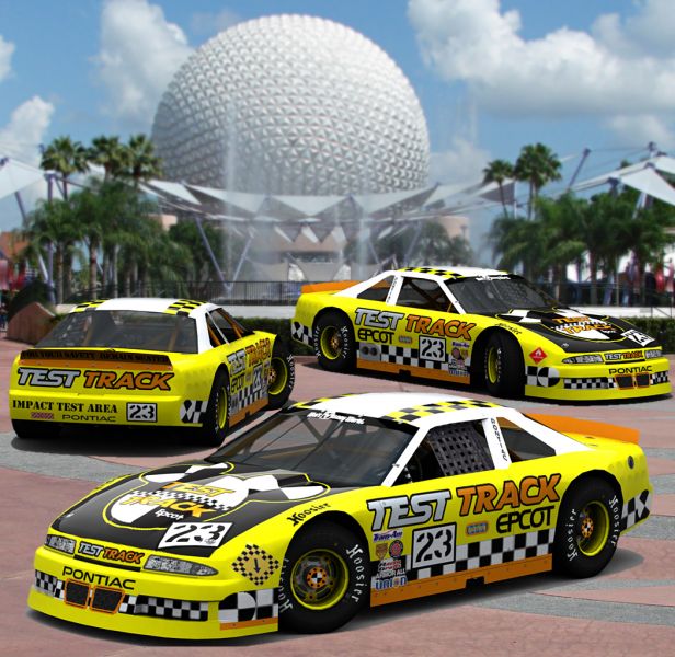 A Trans Am road racer on the ASA90 chassis. Sponsored by the very cool Test Track ride at Epcot in Walt Disney World. The ride recreates automotive design and testing facilities, plus gives an idea what high speed high-banked turns are like on the race track.