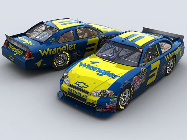 The Yellow trunk version was uncommon as was the yellow number 3 on the side with the blue siding running forward from the doors to the front fender. Dale drove this car only once at Daytona in 1984. After that race, it was decided that the car would stand out more if they reversed the colors from blue over yellow to yellow over blue, and the rest is history. After that it became the familiar color scheme Wrangler from 1984 through 1987.