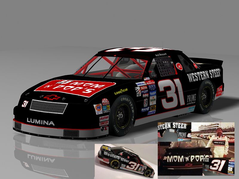 The black and red Mom'n Pops car is the one everybody knows. But he drove this version in the Fall Atlanta Race, more less a start and park car. He ran 3 laps. I had always heard they entered this car in case the #3 wouldn't start, to clinch the championship. Base by Me, Numbers from BER, Logos from google or me, render scene from here (Racingrafix).